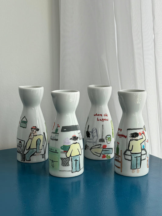 ‘Where Life Happens’ Hand-drawn Vase Set of 4